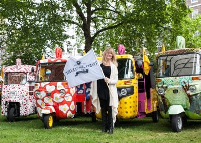 Launched by Elephant Family Patron, Goldie Hawn, a fleet of elephant-infused rickshaws charmed Londoners over the summer appearing at parades, events, shops and hotels across the capital before being auctioned at an event hosted by TRH The Prince of Wales and The Duchess of Cornwall. This first adventure was undertaken by scores of intrepid racers who made a wild, 500km journey in 49 rickshaws across India to meet the elephant who started it all, Tarain her Kipling Camp home.